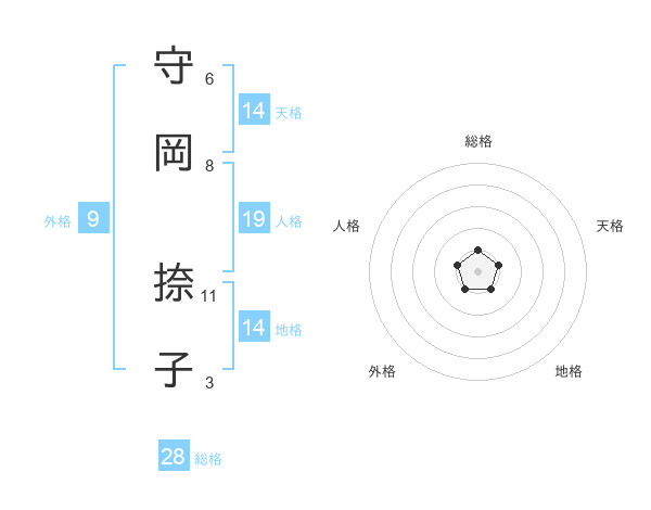 守岡 捺子さんを姓名の画数から五運を鑑定