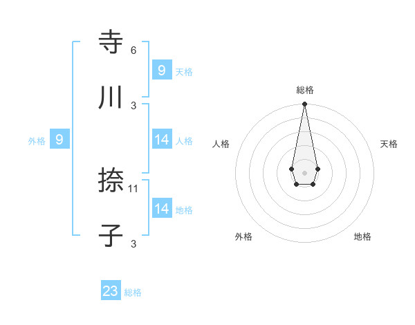 寺川 捺子さんの総格は23画の5点!