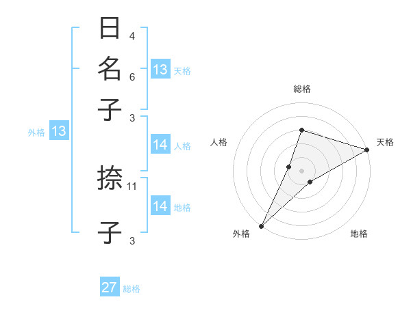 日名子 捺子さんの総格は27画の3点!