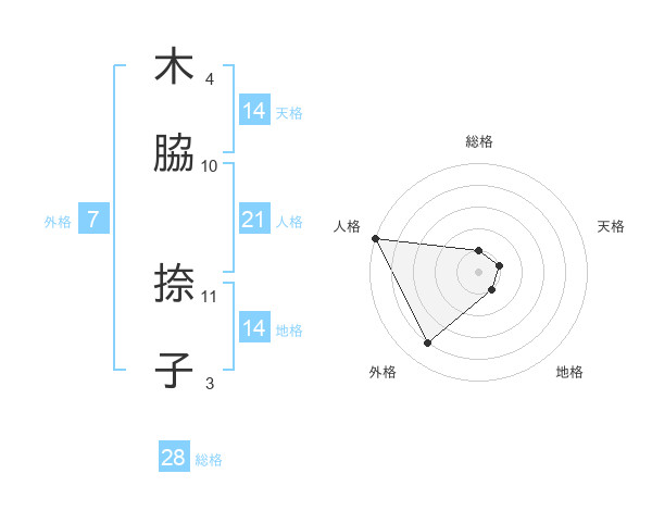 木脇 捺子さんの人格は21画の5点!