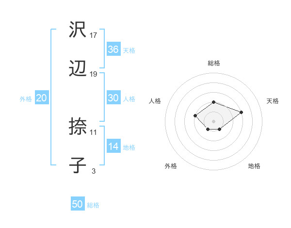沢辺 捺子さんを姓名の画数から五運を鑑定