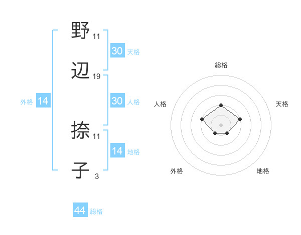 野辺 捺子さんを姓名の画数から五運を鑑定