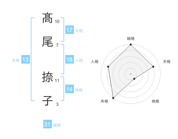 髙尾 捺子さんの総格は31画の5点!