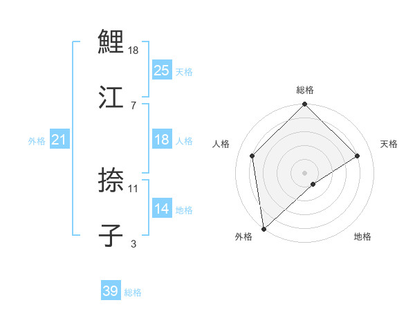 鯉江 捺子さんの外格は21画の5点!