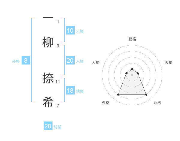 一柳 捺希さんを姓名の画数から五運を鑑定