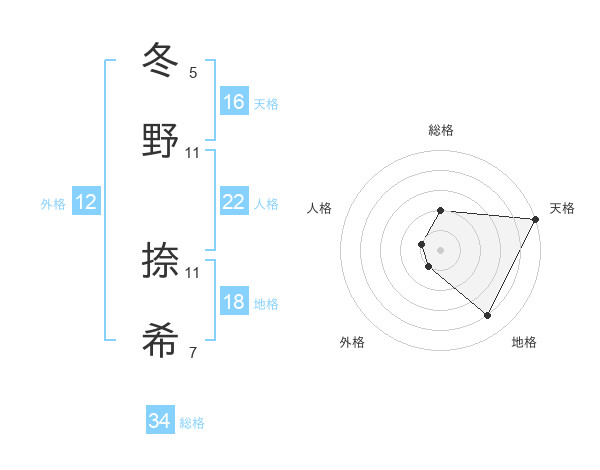 冬野 捺希さんの総格は34画の2点!