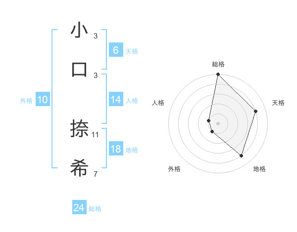 小口 捺希さんの総格は24画の5点!
