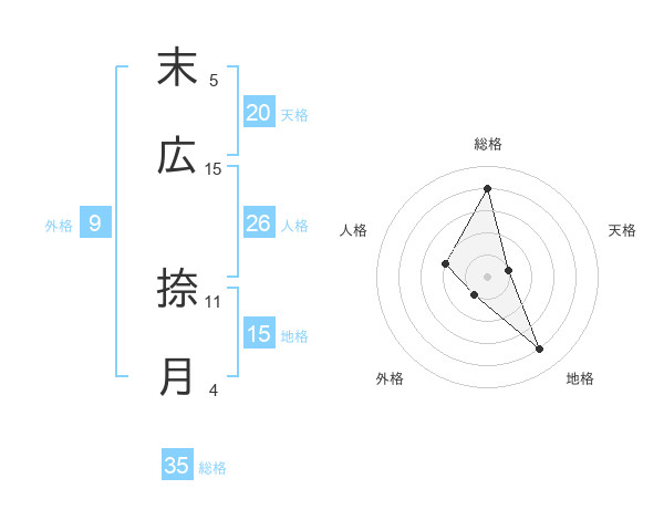 末広 捺月さんを姓名の画数から五運を鑑定