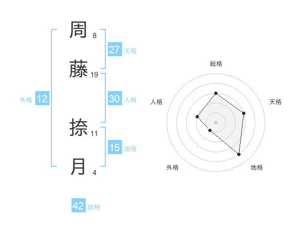 周藤 捺月さんの外格は12画の1点!