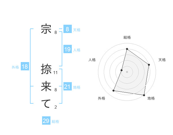 宗 捺来てさんの総格は29画の4点!