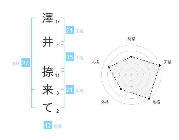 澤井 捺来てさんの地格は21画の5点!