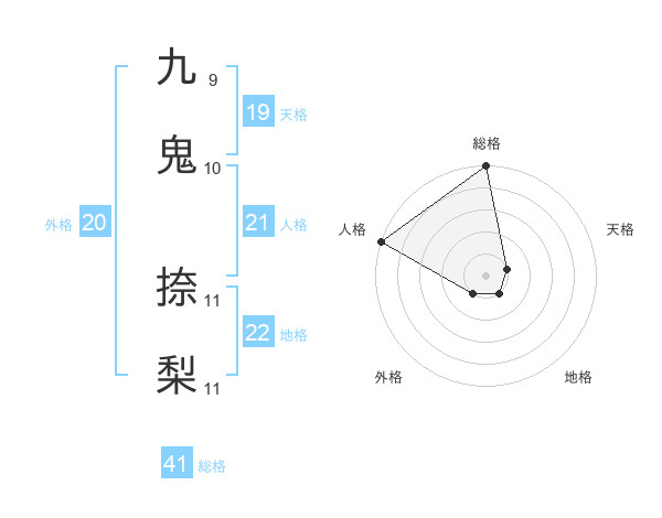九鬼 捺梨さんを姓名の画数から五運を鑑定