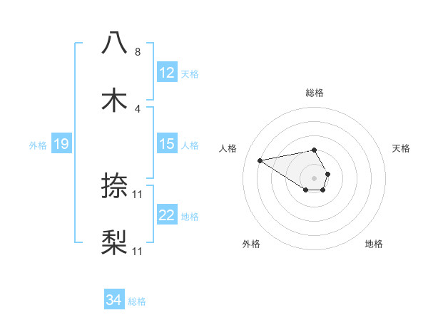 八木 捺梨さんを姓名の画数から五運を鑑定