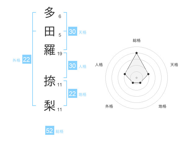 多田羅 捺梨さんを姓名の画数から五運を鑑定