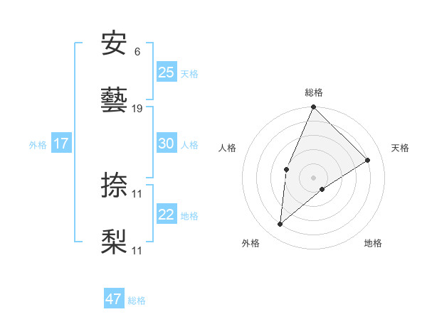 安藝 捺梨さんの総格は47画の5点!