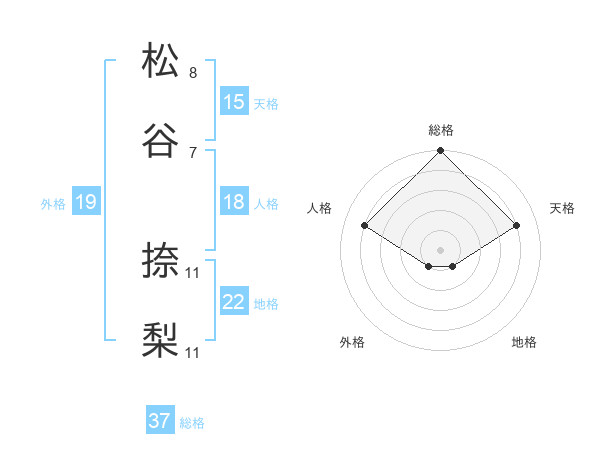 松谷 捺梨さんの総格は37画の5点!