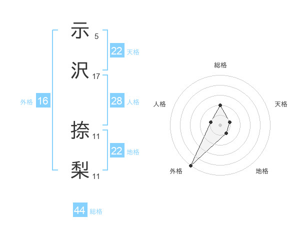 示沢 捺梨さんの地格は22画の1点!