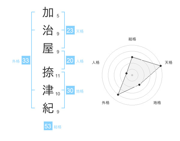 加治屋 捺津紀さんを姓名の画数から五運を鑑定