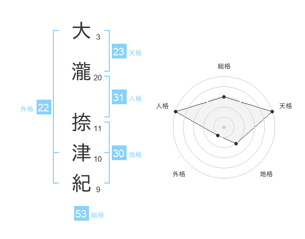 大瀧 捺津紀さんの天格は23画の5点!