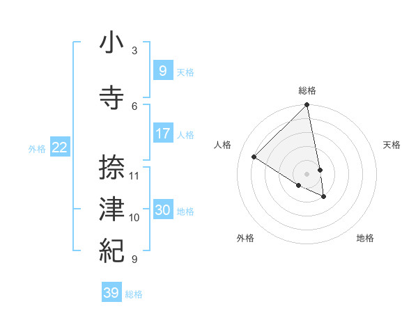 小寺 捺津紀さんを姓名の画数から五運を鑑定