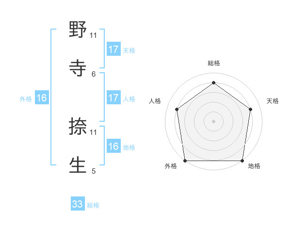 野寺 捺生さんを姓名の画数から五運を鑑定