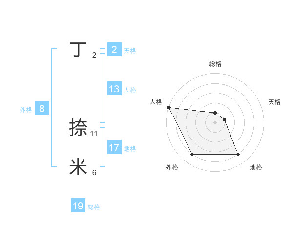 丁 捺米さんの総格は19画の1点!