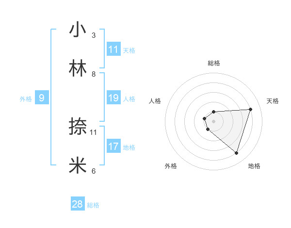 小林 捺米さんの総格は28画の1点!