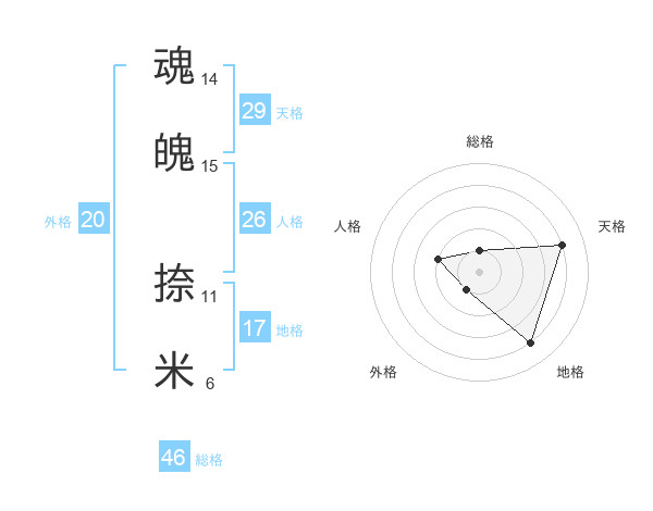 魂魄 捺米さんの外格は20画の1点!
