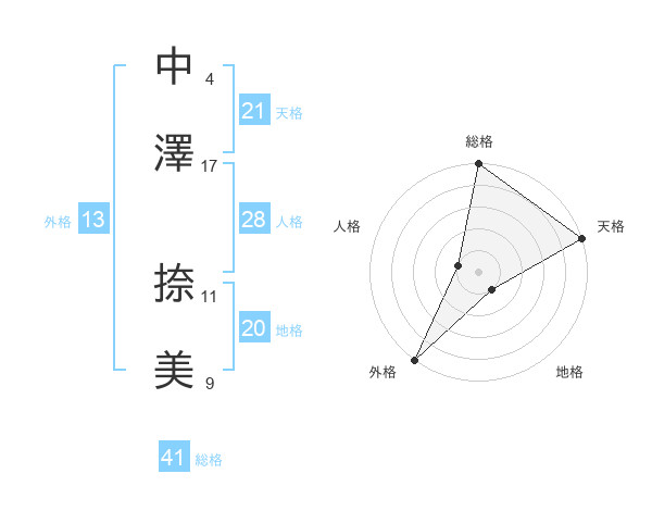 中澤 捺美さんの天格は21画の5点!