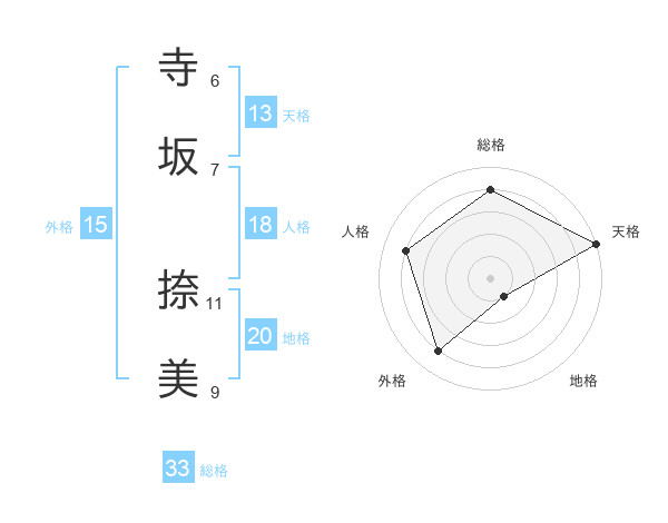 寺坂 捺美さんの天格は13画の5点!
