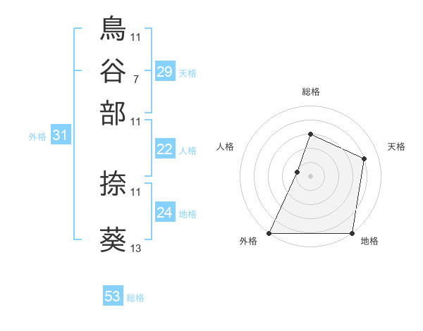 鳥谷部 捺葵さんの外格は31画の5点!
