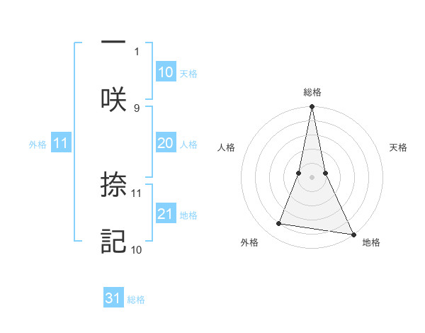 一咲 捺記さんの総格は31画の5点!
