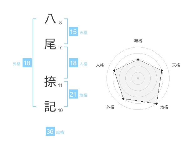 八尾 捺記さんを姓名の画数から五運を鑑定