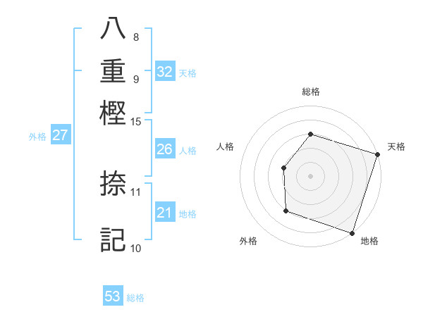 八重樫 捺記さんを姓名の画数から五運を鑑定