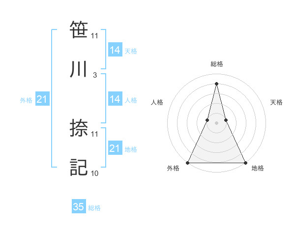 笹川 捺記さんを姓名の画数から五運を鑑定