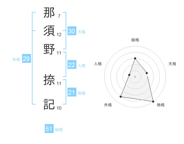 那須野 捺記さんを姓名の画数から五運を鑑定