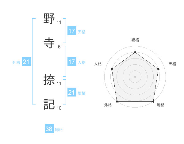 野寺 捺記さんを姓名の画数から五運を鑑定
