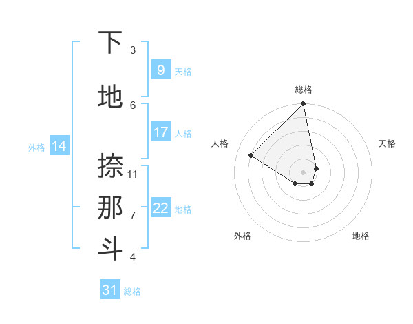 下地 捺那斗さんの総格は31画の5点!