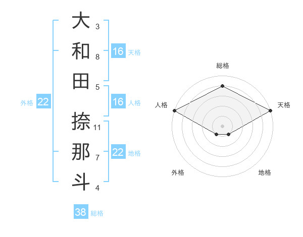 大和田 捺那斗さんを姓名の画数から五運を鑑定