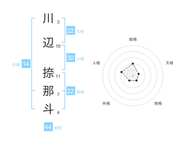 川辺 捺那斗さんを姓名の画数から五運を鑑定
