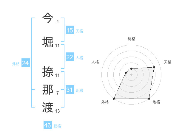 今堀 捺那渡さんの総格は46画の1点!