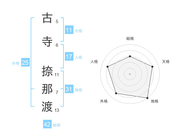古寺 捺那渡さんを姓名の画数から五運を鑑定