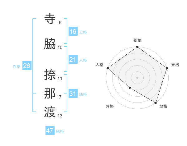 寺脇 捺那渡さんの総格は47画の5点!