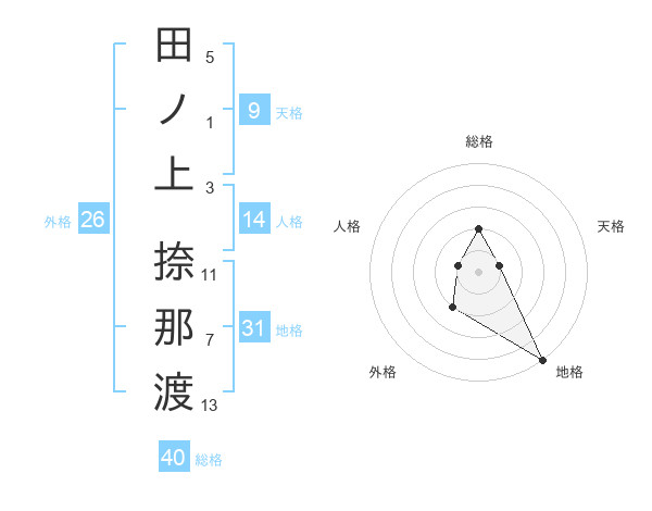 田ノ上 捺那渡さんを姓名の画数から五運を鑑定