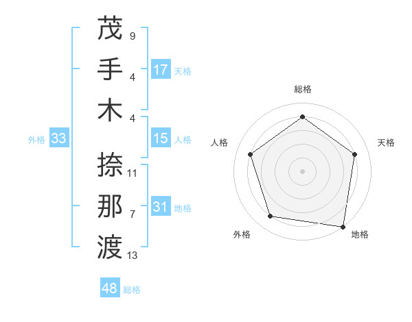 茂手木 捺那渡さんを姓名の画数から五運を鑑定