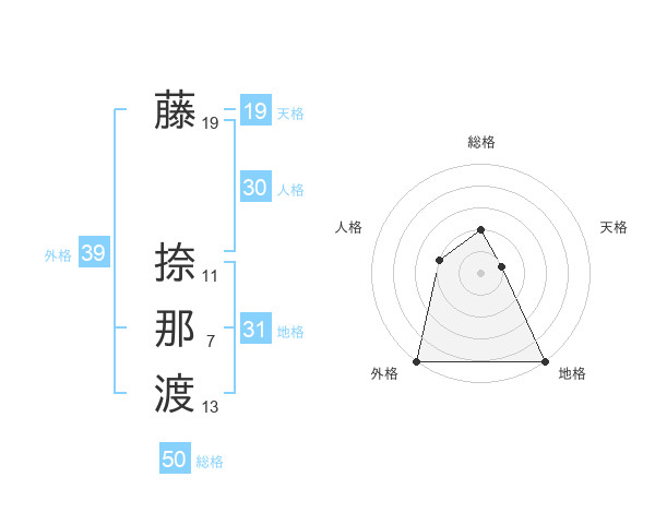 藤 捺那渡さんの総格は50画の2点!