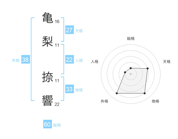 亀梨 捺響さんの外格は38画の4点!