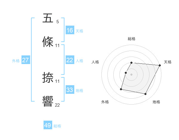 五條 捺響さんの外格は27画の3点!