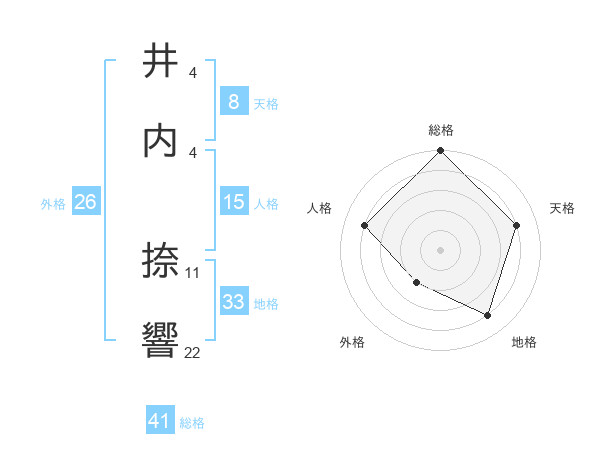 井内 捺響さんの総格は41画の5点!