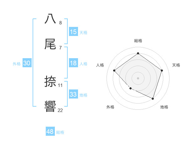 八尾 捺響さんの総格は48画の4点!